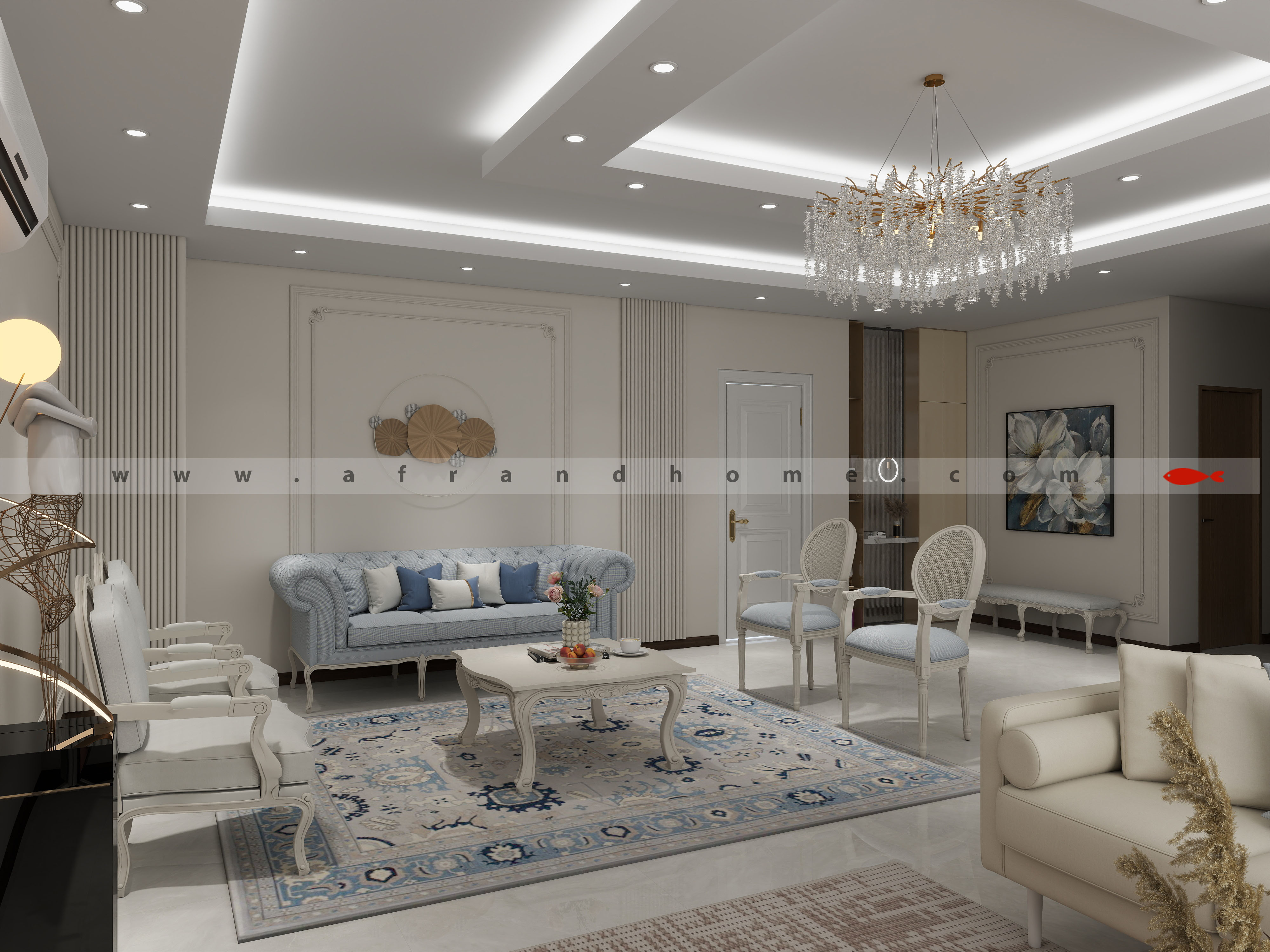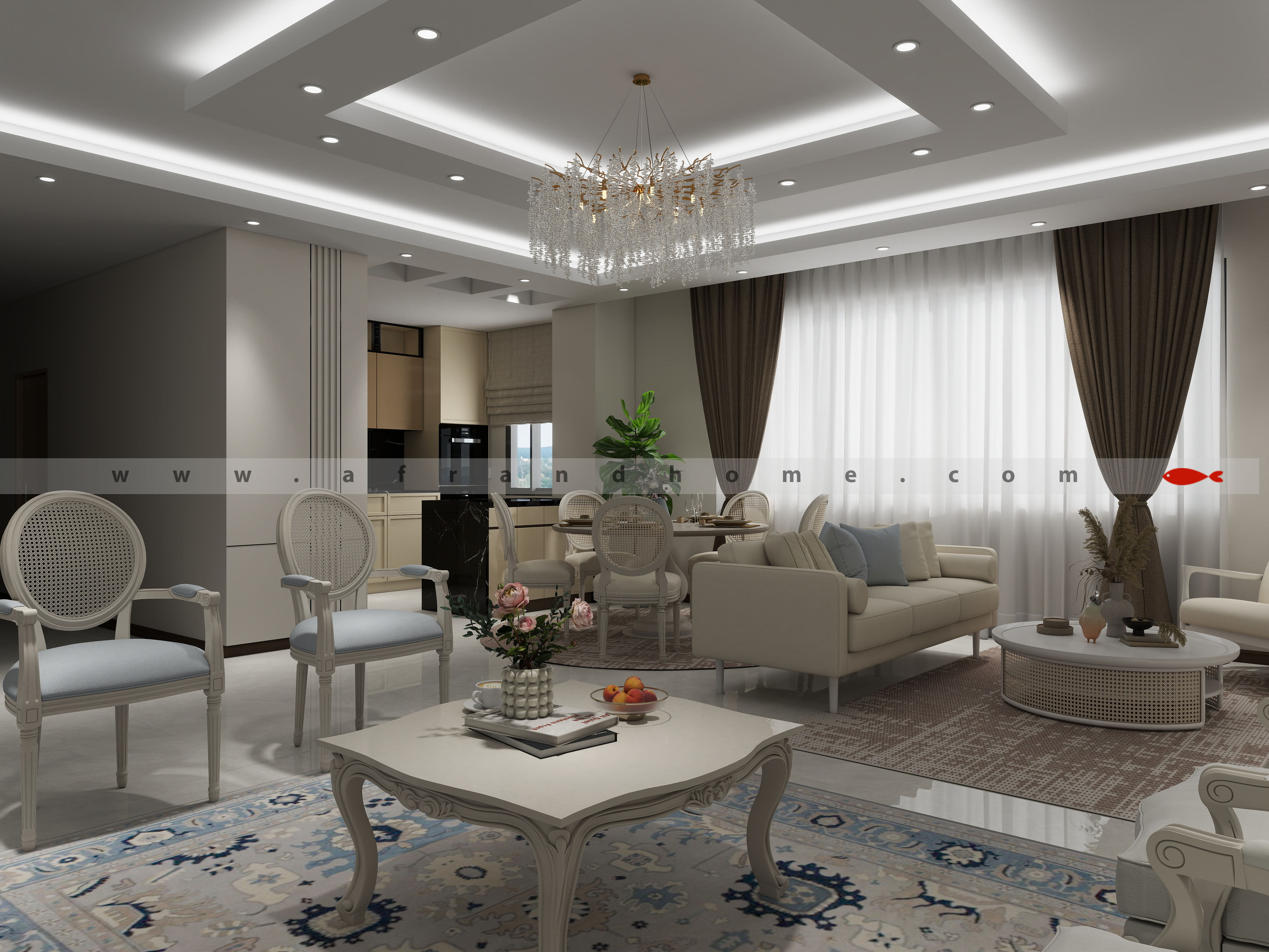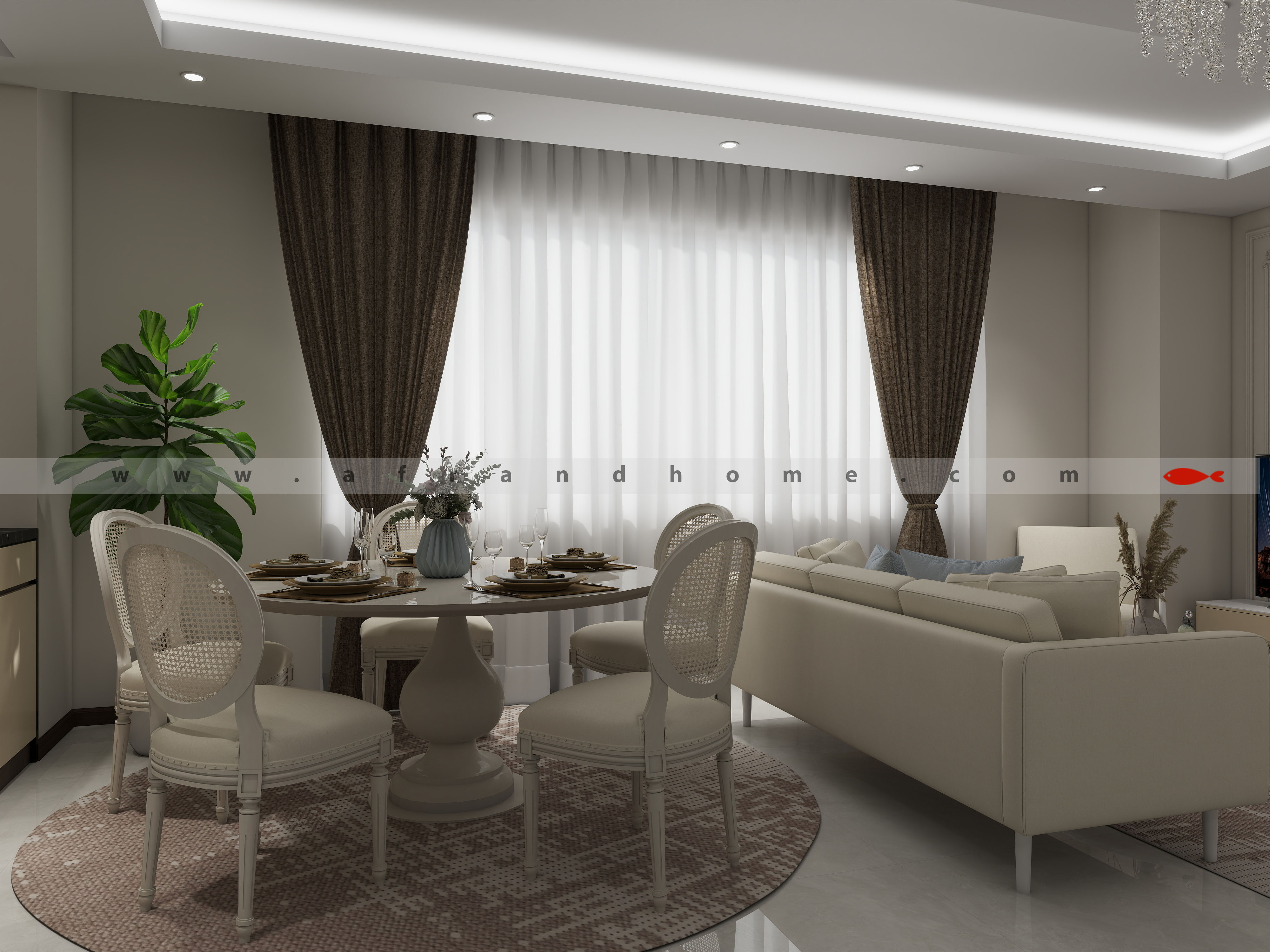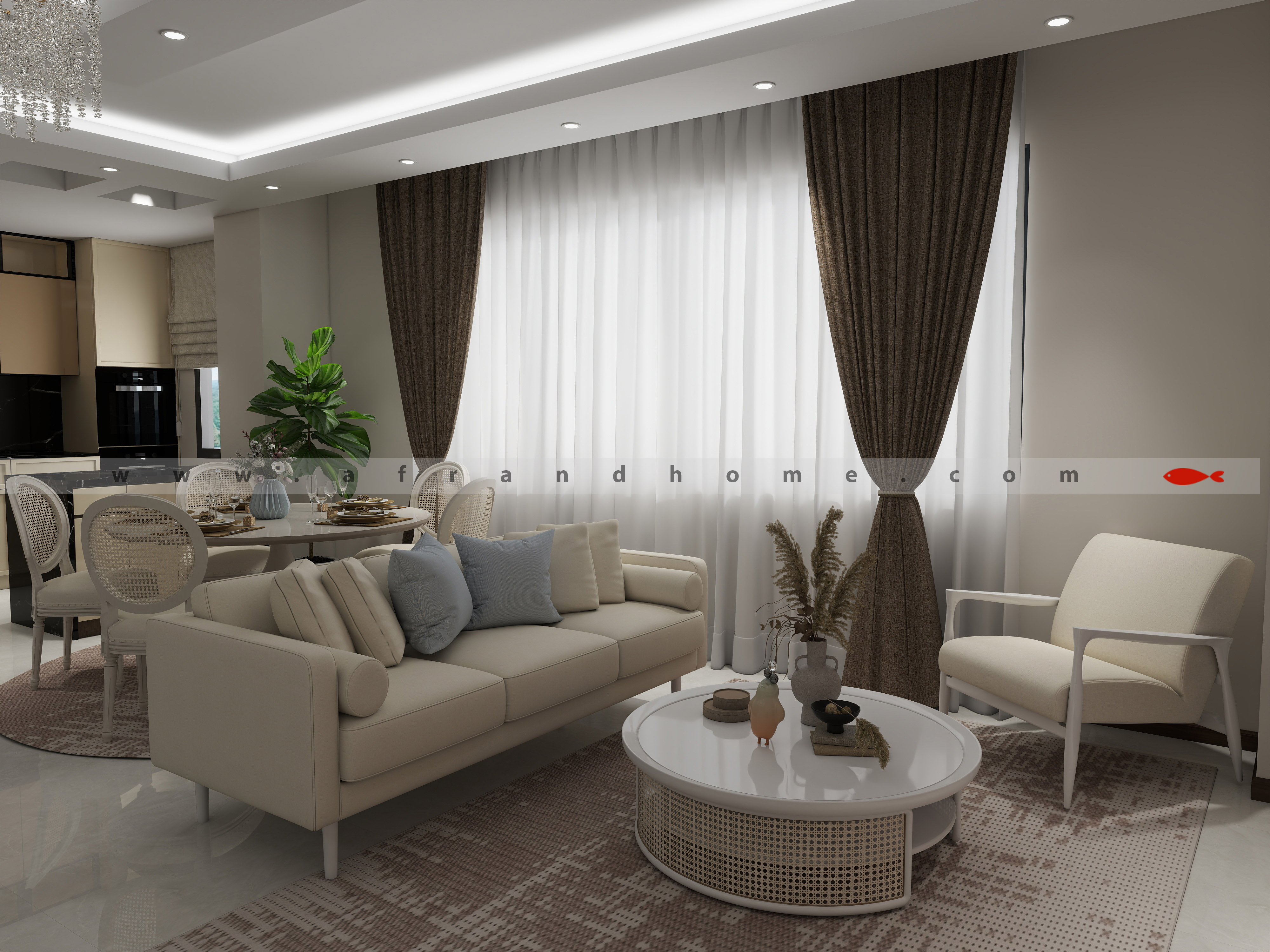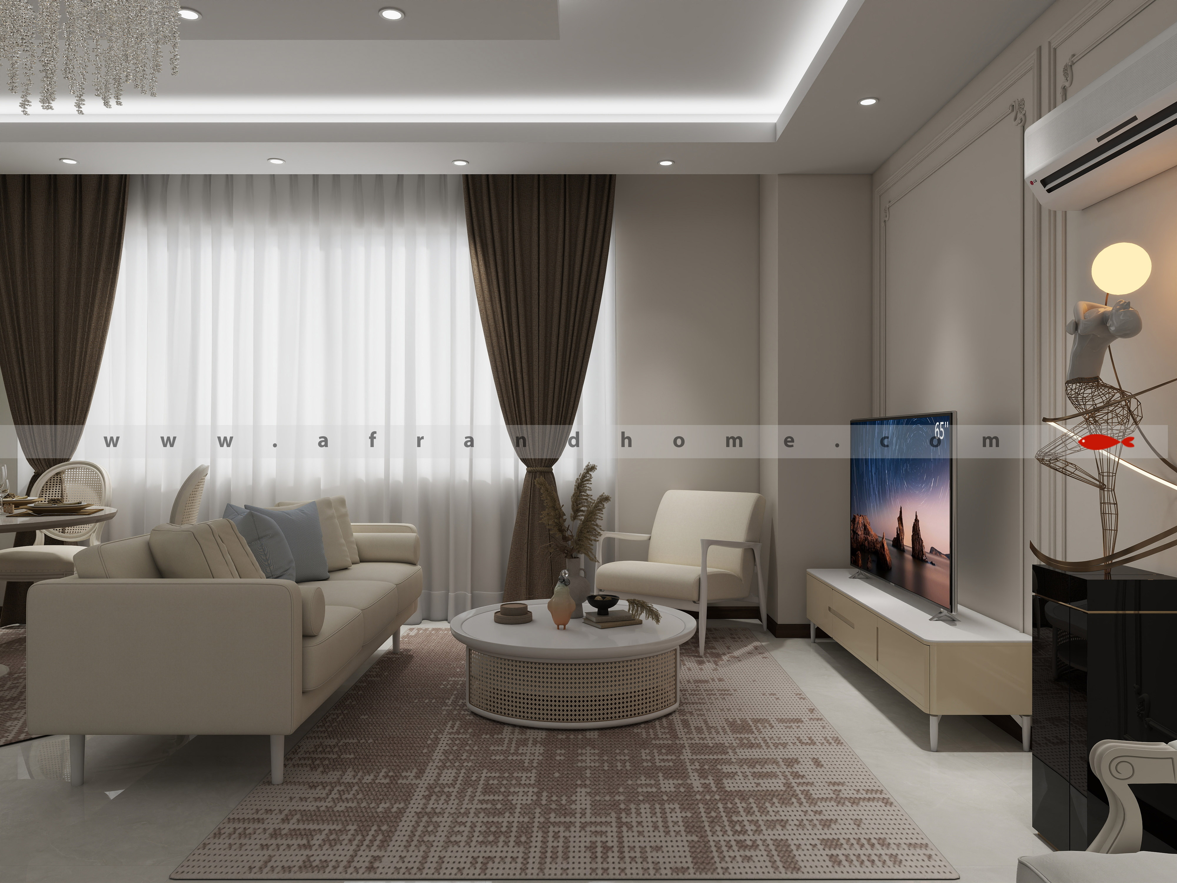 طبق روال کاری تیم افرند، چون مبلمان رو از خودمون تهیه میکنین، طراحی سه بعدی فضای شما به رایگان انجام شد.