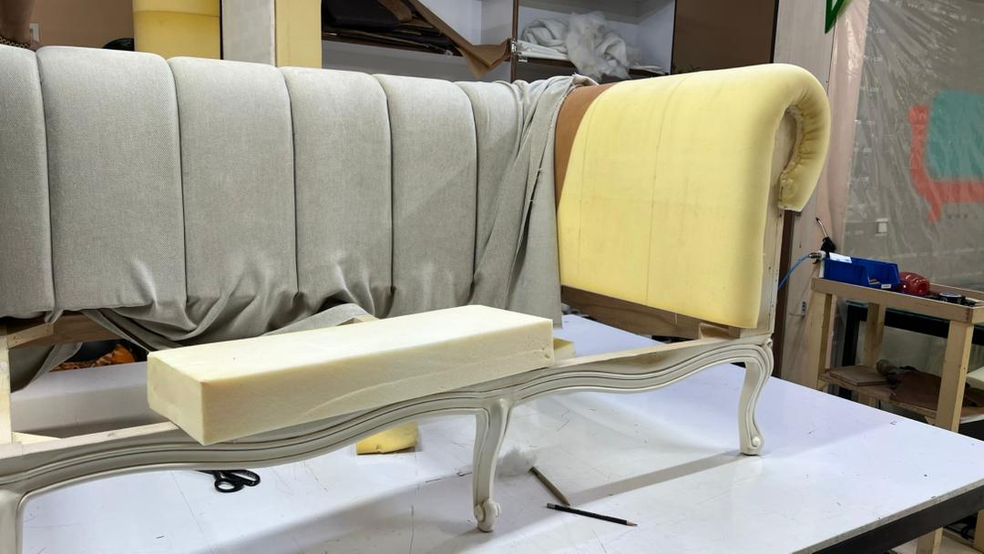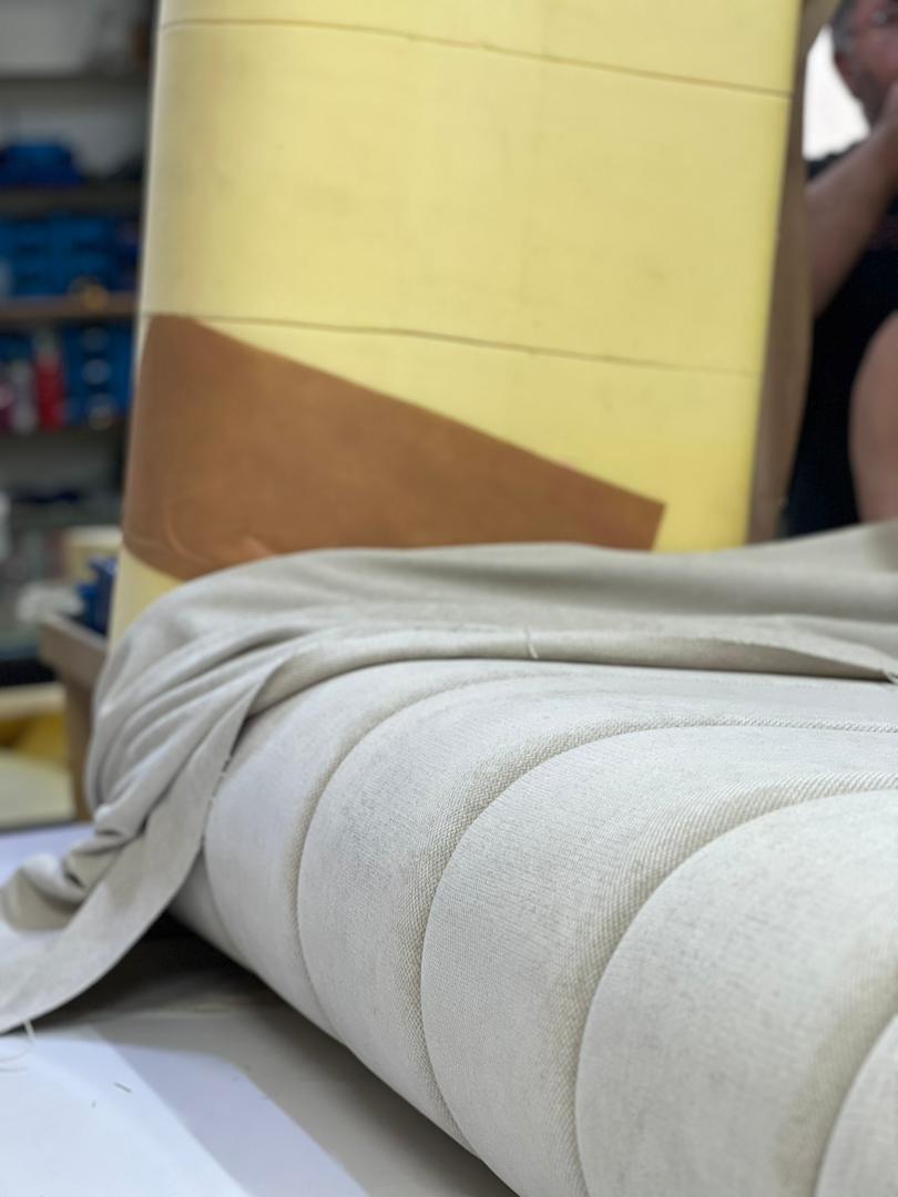 خانم سندسی عزیز مرحله طراحی سه بعدی فضای شما به اتمام رسید و مبلان شما وارد مرحله تولید شدند. در مرحله انتخاب پارچه شما تصمیم گرفتید رنگ آبی رو از مبلمان حذف و فقط در کوسن ها استفاده کنید. فیلم و عکس هایی از این مرحله رو براتون آپلود کردیم: