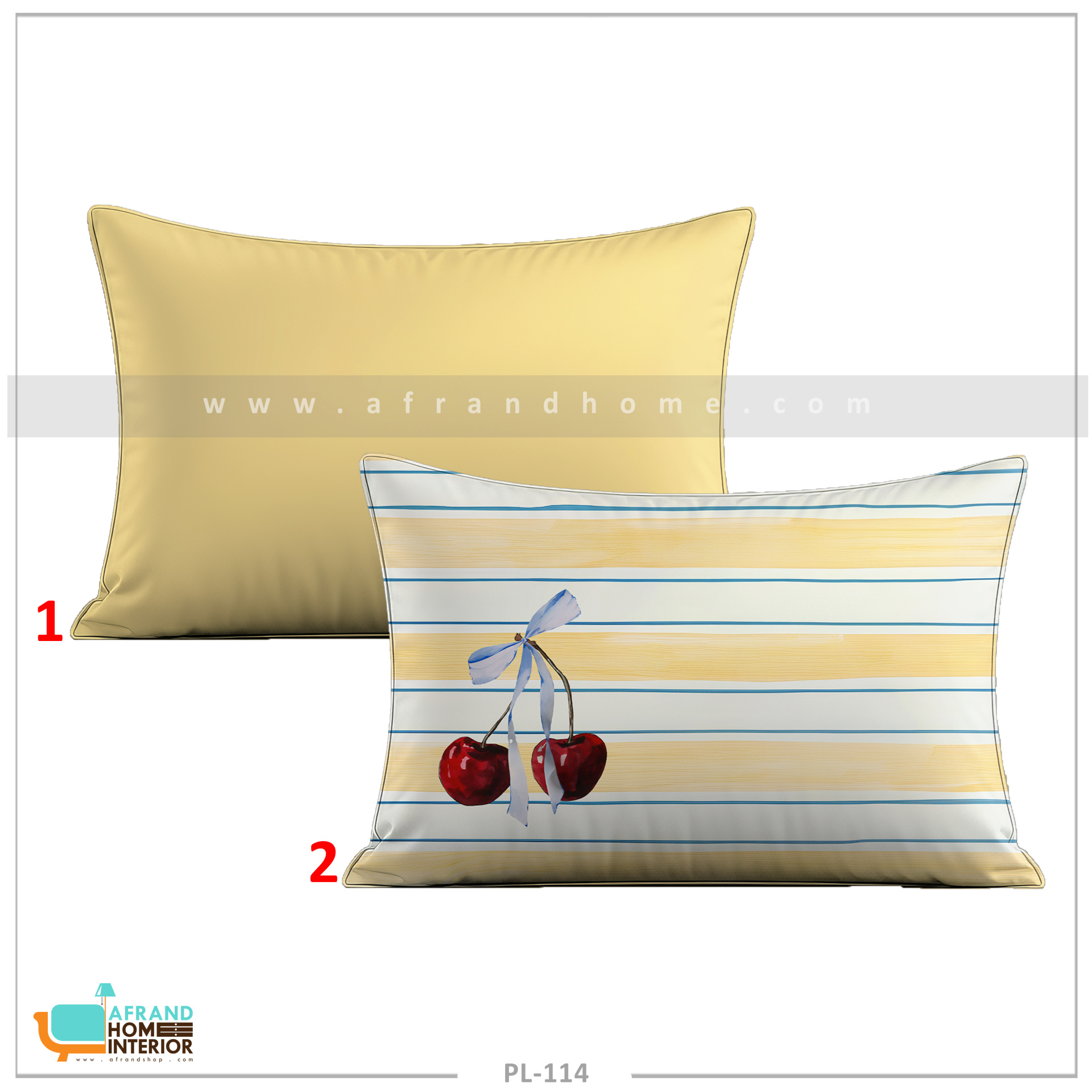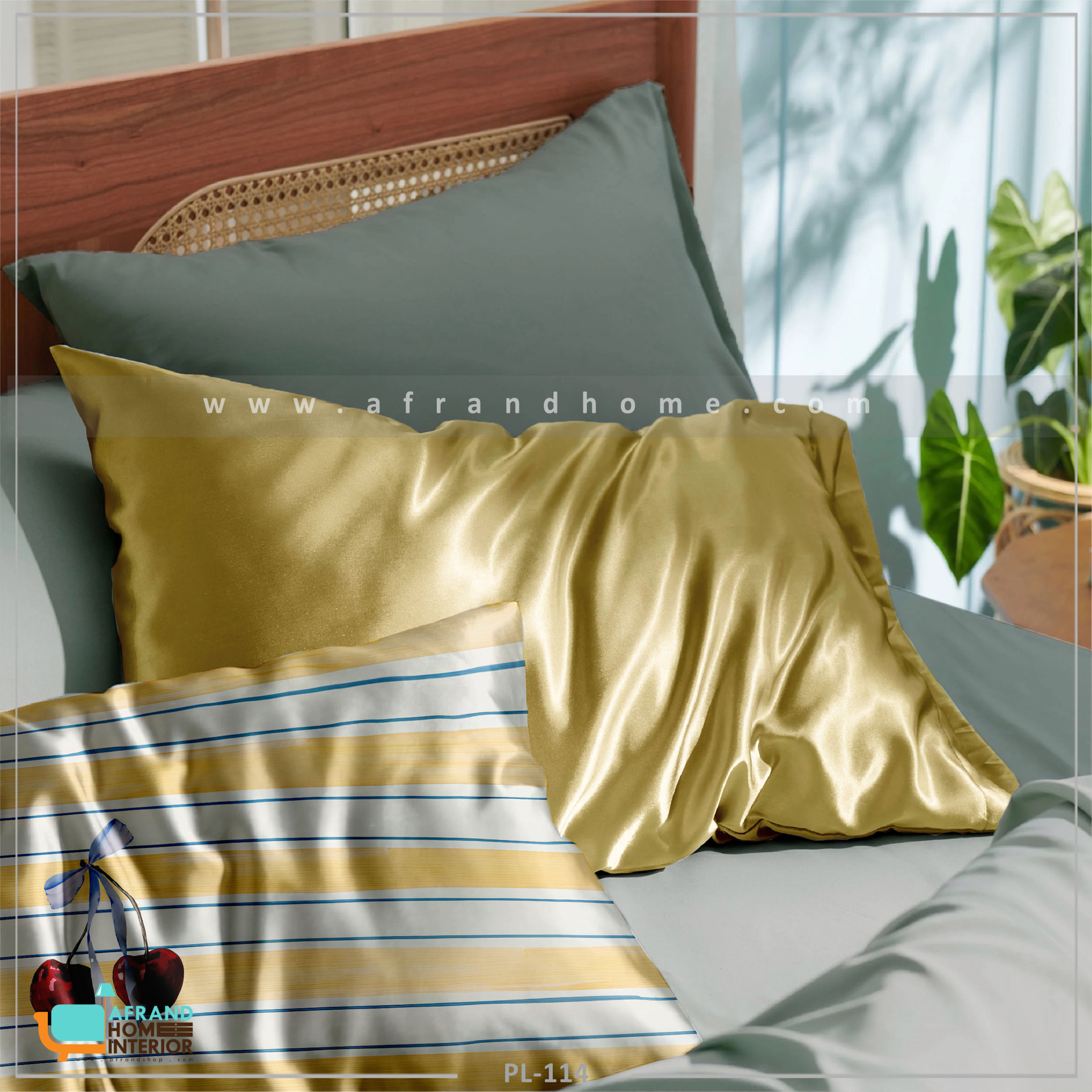 ست روبالشتی ساتن ابریشم طرح راه راه زرد کره ای و گیلاس | کالکشن ترنج (PL-114)