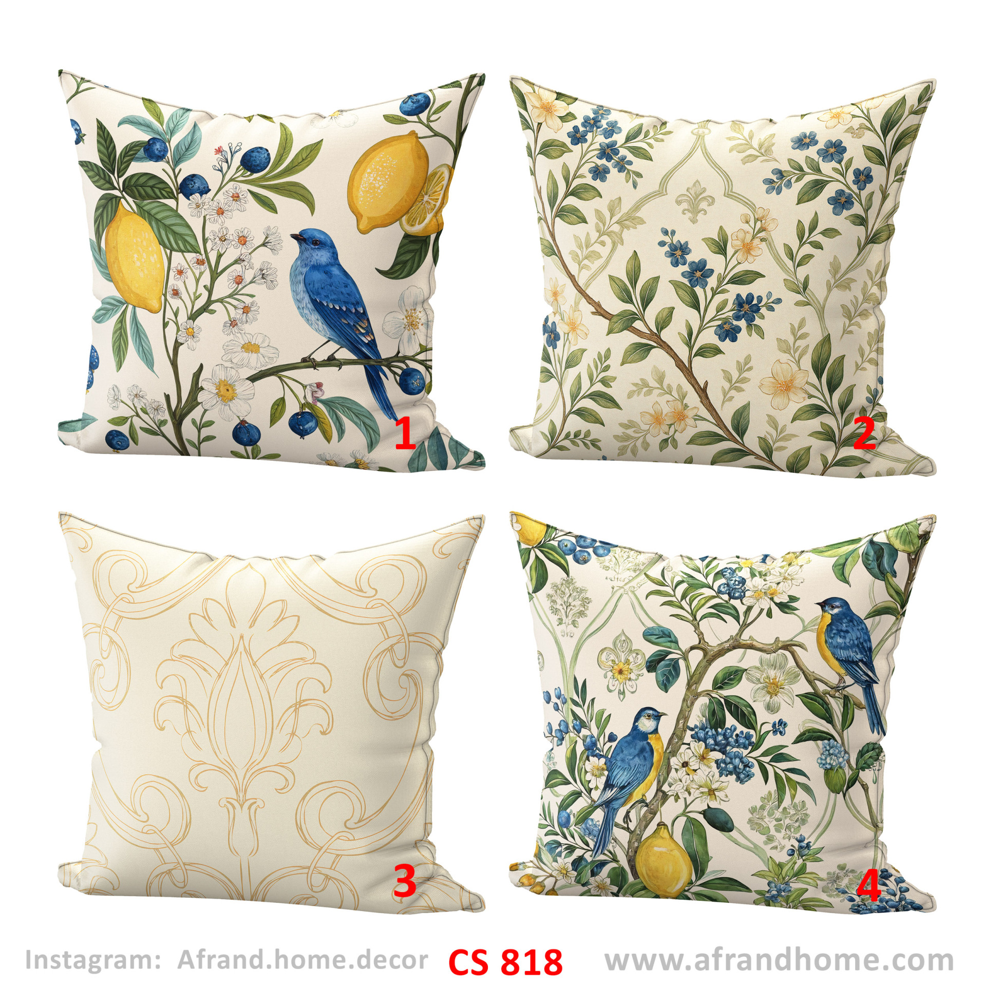 کاور کوسن CS 818 | طرح پرنده و لیمو | رنگهای کرم، آبی و سبز | افرندهوم