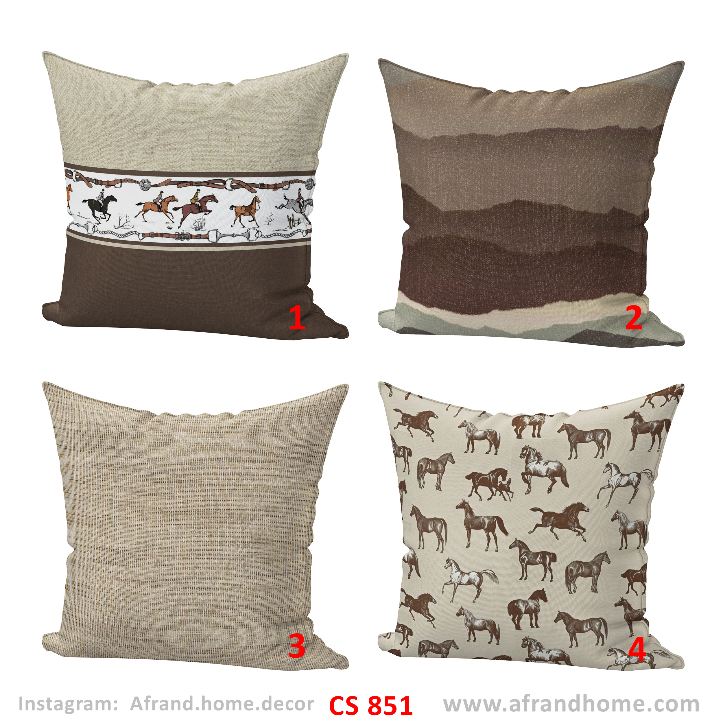 کاور کوسن CS 851 | طرح اسب و طبیعت | رنگ کرم قهوه ای| افرندهوم