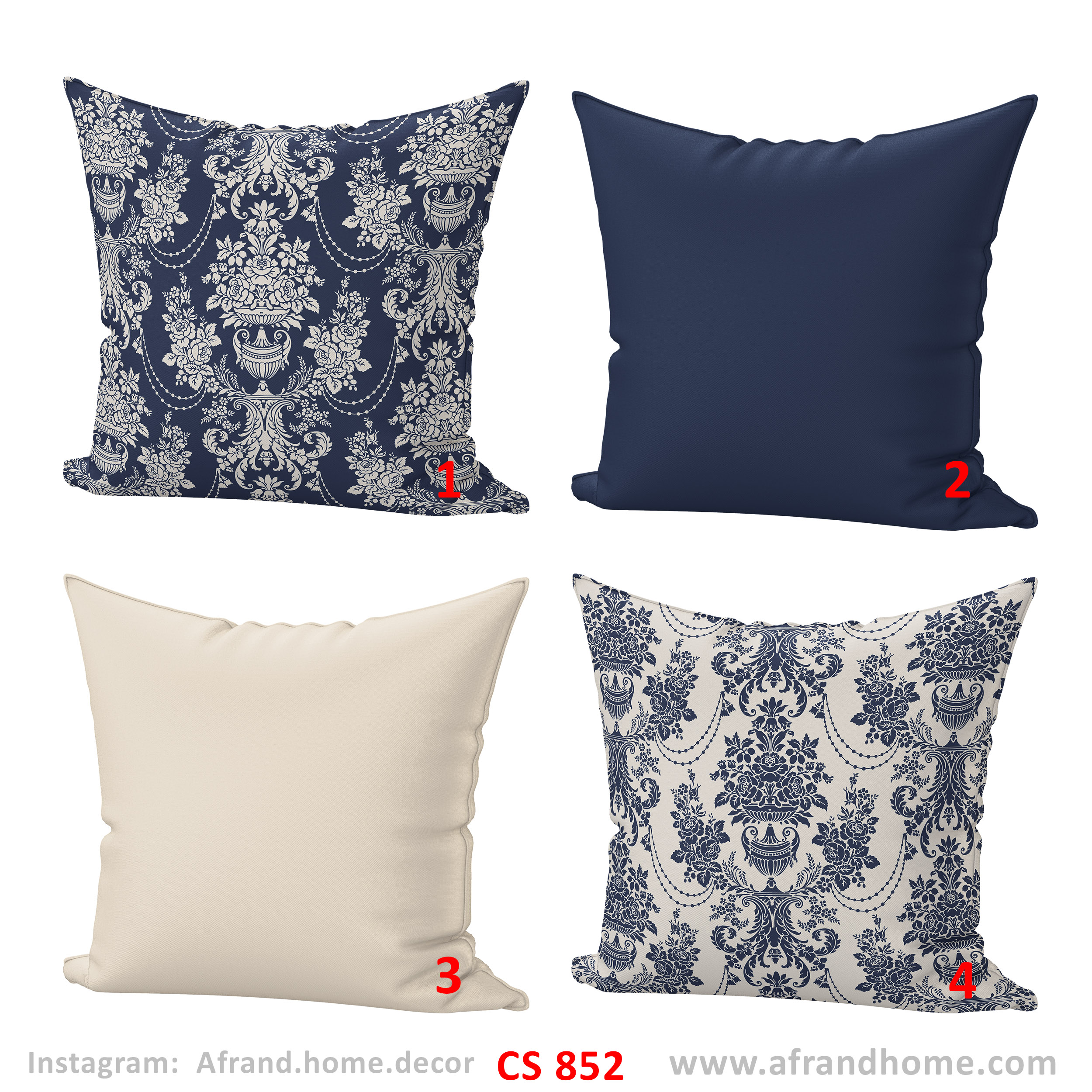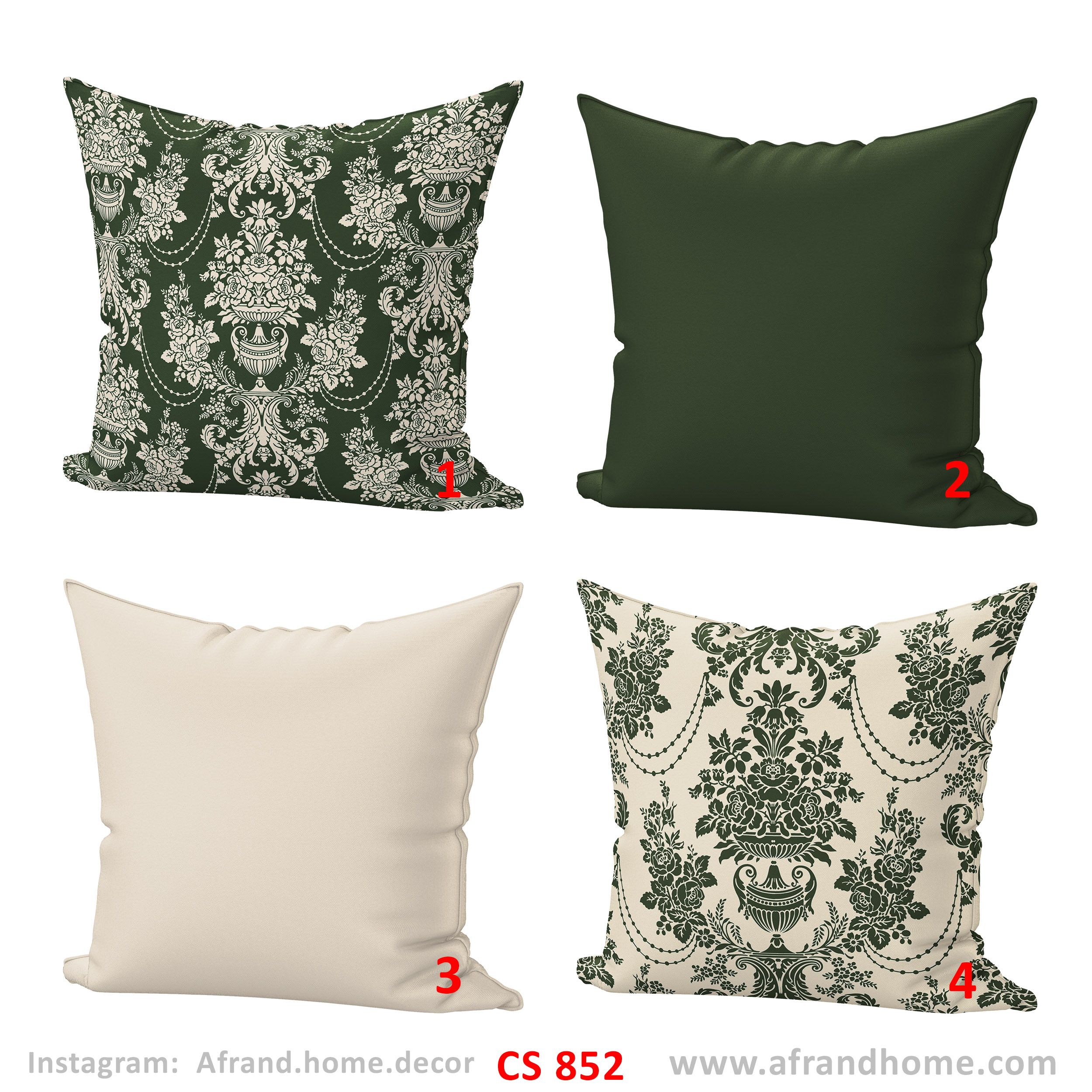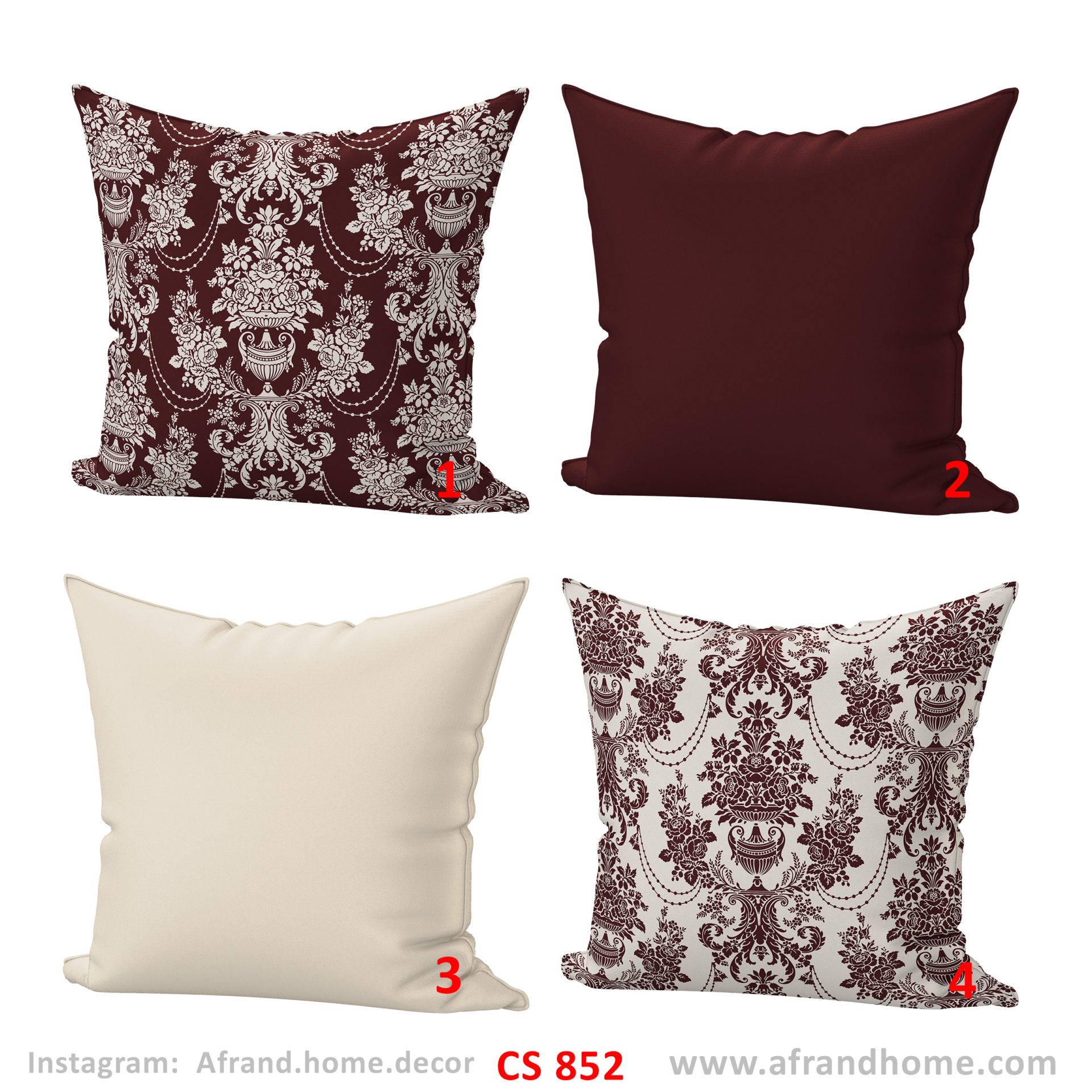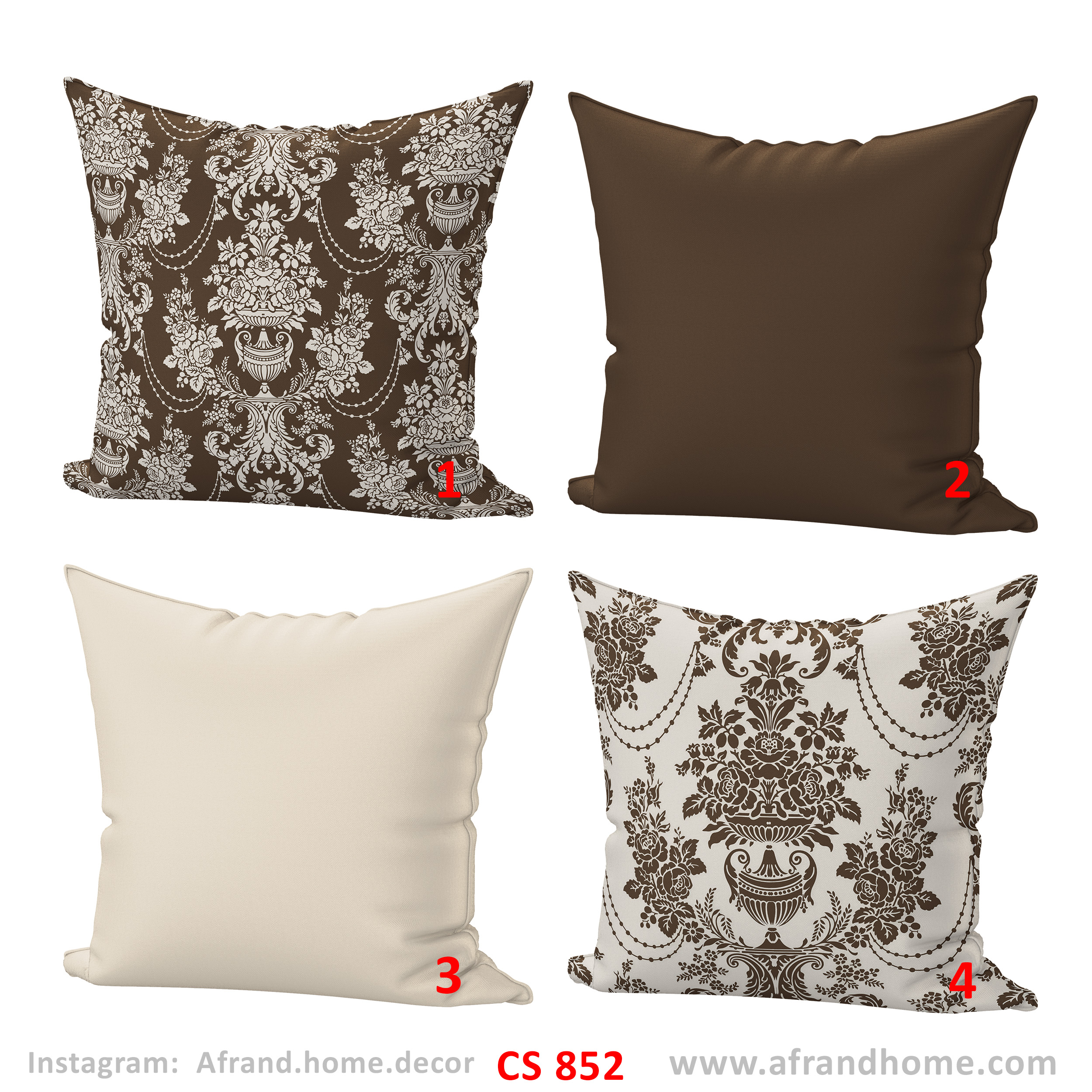 ست کاور کوسن CS852 از برند افرندهوم با الهام از طرحهای کلاسیک و داماسک، انتخابی خاص برای دوستداران سبکهای کلاسیک، ایرانی و فضاهای لوکس است.