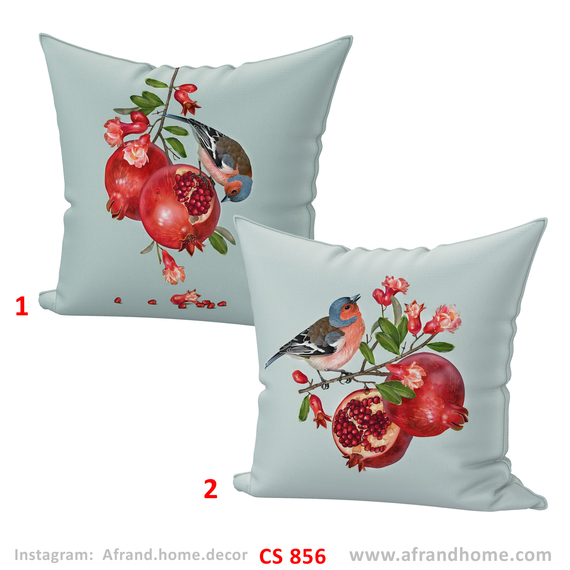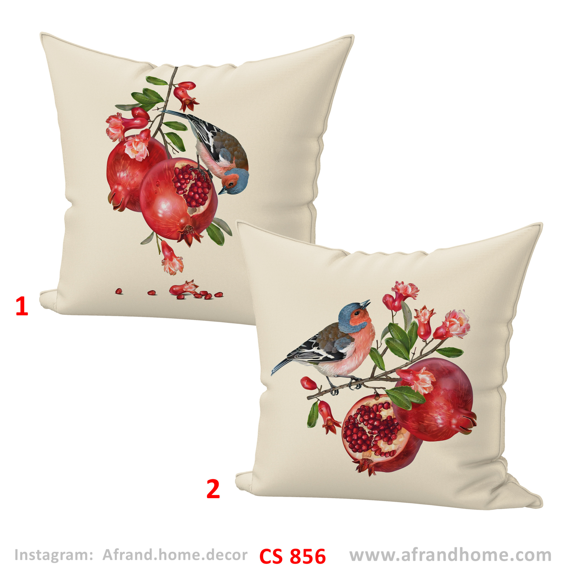 کاور کوسن یلدایی طرح گنجشک و انار آبی و کرم cs-856